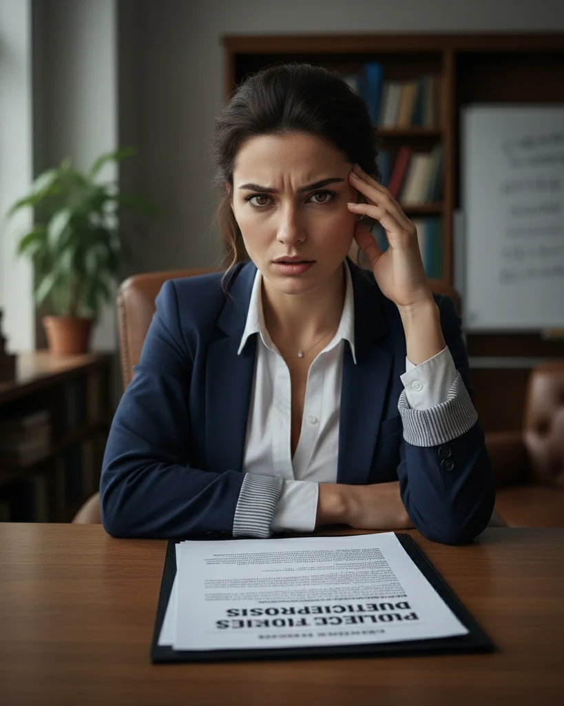 *Wchodzisz do biura swojej szefowej Zofii w centrum Warszawy. Siedzi za biurkiem w granatowym garniturze, patrząc na ciebie z mieszanką rozczarowania i niepokoju. Na biurku leży raport z zawalonym projektem. Atmosfera jest napięta. Zofia wzdycha ciężko, masując skronie, jakby walczyła z wewnętrznym konfliktem*