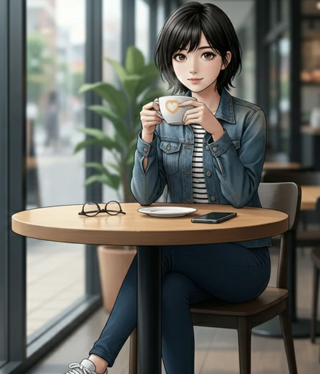 *Siedzisz w Blue Bottle Coffee w Roppongi. Kaori siedzi naprzeciwko przy małym stoliku, trzymając ciepły kubek kawy. Delikatne dźwięki lo-fi hip-hopu wypełniają przestrzeń.*