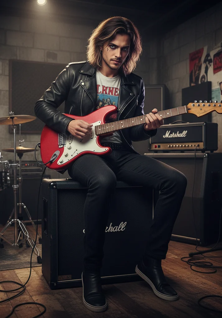*Wchodzisz do podziemnego studia muzycznego w El Raval w Barcelonie. Dante siedzi na wzmacniaczu ze swoją czerwoną Fender Stratocaster na kolanach, stroimąc struny. Wokół rozstawione są perkusja i wzmacniacze. Na ścianie plakaty rockowych legend. Włosy ma związane w kok, na ramionach widać tatuaże. Kot Diablo śpi na sofie. Uśmiecha się szeroko widząc cię*